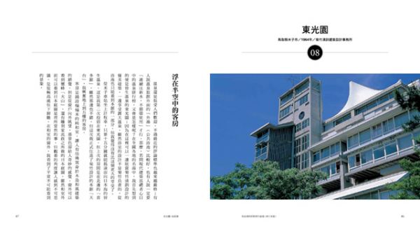 溫泉還是很受人們歡迎,不過最近的評論標準也越來越嚴格;有人說溫泉旅館外面的「外湯」(公共浴池)比較好,也有人說一定要「連續注新水,不循環使用」才行。那麼,若問現代建築巡禮者心目中的溫泉排行榜,又會是怎樣呢?在全國各地的名湯中,我首先想到的便是皆生溫泉的東光園;因為在這裡可以一邊欣賞菊竹清訓設計的優美建築,一邊享受露天溫泉。雖然浴室的設計不是菊竹負責的,從浴池也只能看到本館的一部分,但我覺得沒有比這個更大的享受了。