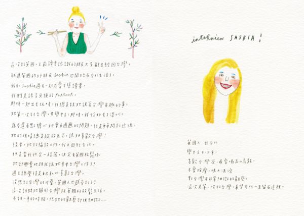 Soupy擅長畫水彩,認為色鉛筆也能變得很大器,甚至粘土雕塑也能讓人很感動。所以在這本書中,她運用了多樣素材,完出多樣的手做樂趣,還特別設計了32頁小別冊與一張海報,帶給讀者閱讀上的放鬆驚喜。畫畫或許只是一種溝通的方式,但重要的是讓人溫暖,真心希望台灣人可以透過這本書學會讓自己開心與放鬆。