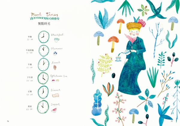 除了深度的探訪,以及輕快的生活體驗,Soupy還走入各式茶館,從茶館的外觀、內部佈置,到餐點擺盤與用餐禮儀,你不但可以學會如何以英式正統的方式來喝下午茶,甚至可以和亨利八世享用同一塊蛋糕!不僅如此,Soupy還會偷偷告訴你,品嘗蛋糕後的真心話!至於各式茶物件、茶器具,茶具的野餐箱、女孩裙擺造型的茶壺保溫套……透過Soupy的筆下實境實物展現,都讓人忍不住驚呼!