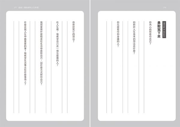 這些表情都反映了一個「正常人」的生活:一種悲哀且辛苦的人生。在我們的認知裡,生命就是艱辛、充滿困難的,證據是:「看周圍的人活得那麼辛苦和沉重就知道了,我之前的十幾年也不輕鬆。」但事情真是這樣嗎?