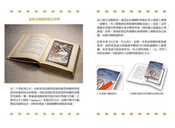 這本由凱.尼爾森(Kay Nielsen)繪製的一九四一年版《日之東.月之西》就是一部挪威傳奇故事集,書中主要收錄的是十五則挪威的傳奇故事,而作為書名的《日之東.月之西》就是書中的第一個故事;其他的故事還有〈藍色腰帶〉、〈寡婦之子〉、〈沒有心臟的巨人〉等。這個版本的《日之東.月之西》因二十五幅由尼爾森所繪製的插畫而享有盛名,也一向被視為兒童繪本中的經典傑作。