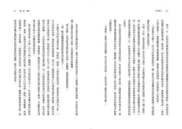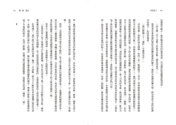你心裡想著,希望視力可以變得更差,差到連距離自己很近的事物都看不清楚,可惜現實是你可以看得一清二楚。在尚未掀開白色紗布前,你不許自己閉上眼睛;直到看見血為止,你都會緊咬下脣緩緩掀開紗布;就算掀開後要重新蓋上,你也不會閉起眼睛。「我會逃走的。」你咬緊牙關心裡想著。要是當時躺在地上的不是正戴而是這名女子,你也還是會逃走;就算是大哥和二哥躺在地上、父親躺在地上,甚至是母親躺在地上,你也一定會選擇逃走。