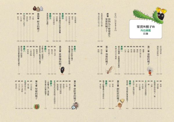 在本書中,將介紹種子們的旅行。隨著植物不同,種子也有各種各樣的色彩與形狀。其實果實與種子的區別相當複雜,有時候看起來像種子,其實是果實。在很多情況下,如果不從開花到結實的發育開始觀察,將難以真正理解。本書為了簡單易懂,一般看起來像籽的就直接稱為「種子」。