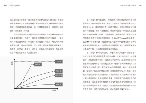 4)「爆發線」,爆發線指的是增長路徑中可以讓公司業務短期內呈現指數級增長的線。如果說增長線的增長設計是線性的,那爆發線要的就是指數級的。本書會將爆發線背後的基因如數位化、社交因子以及風投資本等一一進行呈現。