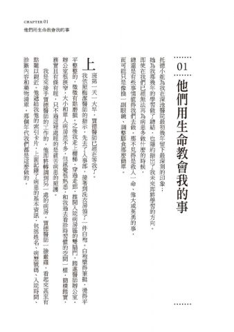 「我在這裡照顧了1686位患者,他們教了我許多事,改變了我,也以始料未及的方式改變了我的醫療。」史薇特在本書寫下她在深池醫院的所見所聞,與尋找醫學精神的感思。