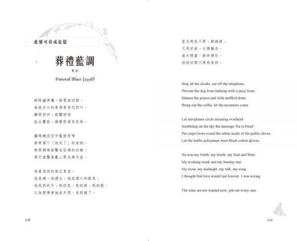 這首〈歌〉是一首自悼詩,詩人羅塞蒂(Christina Georgina Rossetti,1830-1894)遙想自己從嚥氣到身軀腐朽的過程。全詩共兩段,每段八行。第一段前四行詩人新死,吩咐愛人無須哀傷,接續兩行寫青草雨露,輕描淡寫時光流逝的痕跡,最後收在詩人大度豁達,不強求愛人牽掛,只因肉身終究會腐朽、五感終究會消逝,此時靈魂抵達夢土,在這將暗未暗、將明未明的暮色中,詩人的記憶也許就此消融,而暮光過後便是復活,不知前世的愛人還記掛否?