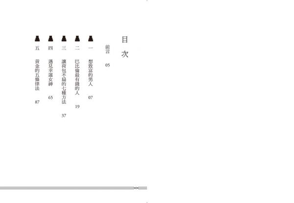 「收入,就是這個。」班西爾大喊。「我希望我能有一筆收入持續地湧入我的錢包裡,無論我坐在牆上或是去遙遠的地方。阿卡德一定知道該如何創造收入。你覺得他可以讓我這樣的笨頭腦弄清楚這件事嗎?」