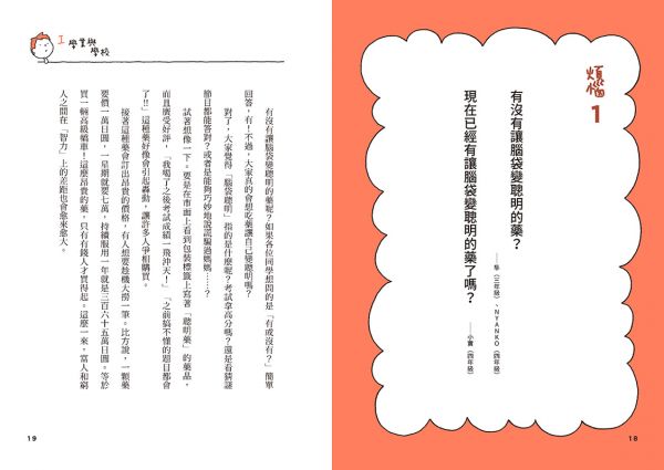 本書是將東京學藝大學附設竹早小學二百五十六位孩子,對於生活、學業、交友的真實煩惱收集在一起,由腦科學家池谷裕二與繪本作家吉竹伸介聯手合作,以科學又幽默的觀點為大家解惑。