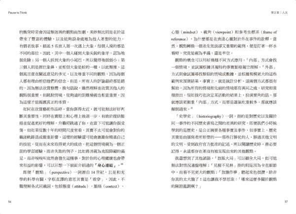 如果說讀完本書,你應該要學到什麼無遠弗屆、一體適用的原則的話,那就是:花點時間,在思考前先刻意暫停一下,是非常值得的。在進行重要決策之前刻意暫停,以便使用邏輯嚴謹的架構來協助決策;在學習新事物之前,先刻意暫停,以便搞清楚最有效率的學習方式;在妄下定論之前,先刻意暫停,直到你了解所有影響判斷的認知偏誤。你覺得心情不好時,也先刻意暫停,以便了解這些感受的根源,以及如何積極正面去反制跟解決。你不需要暫停非常久,但是養成在糾結的人生旋風中稍稍退一小步的習慣,將會帶來重大的回報。