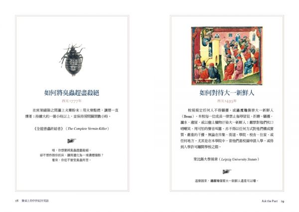 中世紀和近代早期的讀者可曾懷疑過,這位古代哲學家所兜售的竟然是牙齒美白和去污妙方,而不是超然存在和煉金術法則呢?想當然耳。但是這些文本的世俗傾向幾乎無損對大眾的吸引力。隨著印刷業的發展,新的一批專業人士,如印刷業者和專業作家,開始向廣大的讀者群推銷書籍,關於日常生活的建議小冊子迅速激增,諸如義大利一位印刷業者於1525年出版的《祕方全集》(Dificio di ricette),滿足廣大讀者對於如何長出鬍子、如何在水中燃燒蠟燭這類的求知欲望。(本文未完)