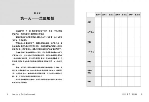 本書提供的擇食建議適用每一個人,目標不是要立即翻轉你既有的飲食習慣,而是為了讓你有機會反思自己的飲食模式。不論你是想了解超加工食品對健康的影響,還是想獲得備餐的靈感,本書是供你隨時參閱的工具書。在你減吃超加工食品的路途上,將會一直陪伴你。