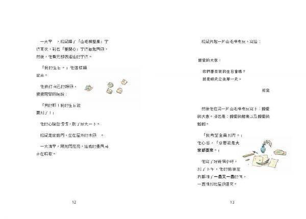 松鼠花了好幾個小時,寫信邀請所有動物來參加他的生日會,