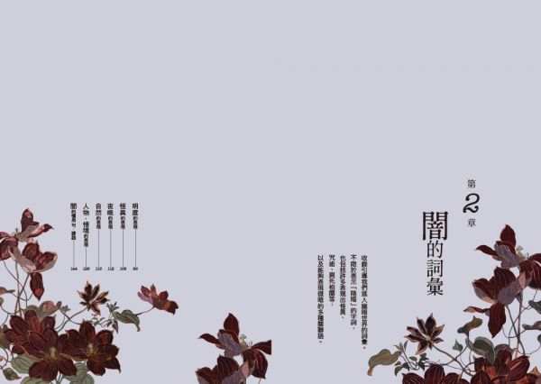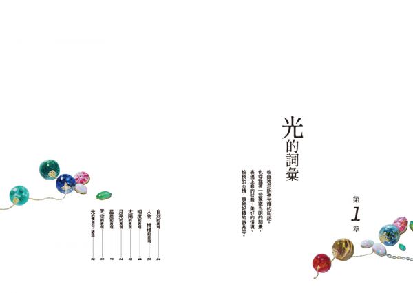 涵蓋明度‧人物‧天體‧季節‧時間‧神妖傳說‧顏色‧花鳥風月等的豐富、獨特、有詩意的詞語,建構出觀看世界的方式,打破線性思考,讓靈感從多方向湧現。