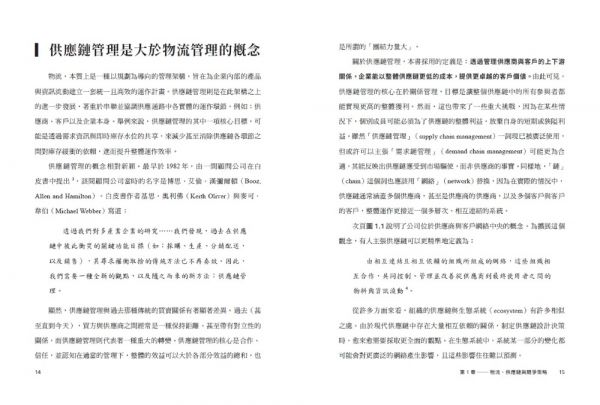 書中文字清晰、章節安排有條理,輔以多元且引人入勝的實例,帶領讀者深入探索當今的供應鏈應如何架構與管理。——約翰.曼甘(John Mangan),英國新堡大學工程學院的航運與物流學系講座教授