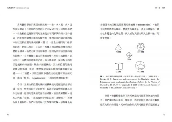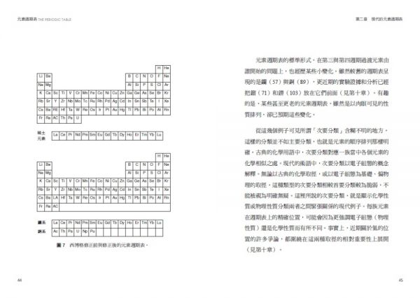 自門得列夫發表週期表後,一百五十多年來有許多人撰文介紹化學領域中最具代表性的系統。然而,唯有艾瑞克‧希瑞能以如此簡明扼要的方式,介紹元素週期表的來源、意義與最新發展。