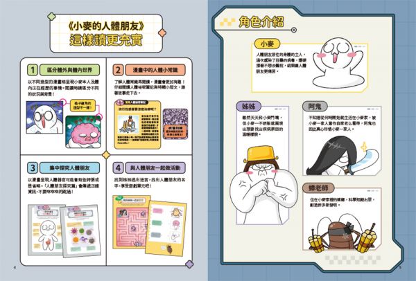 本書結合漫畫劇情、擬人化角色、人體知識補充單元與活動遊戲頁,是一套能讓孩子笑著學會人體運作的STEAM知識讀物。