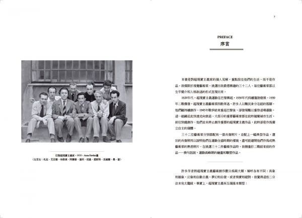 32位藝術家有一張肖像照片,及一幅典型作品。選出的肖像照用以說明他們在運動全盛時期的樣貌,盡可能避開他們作為成熟藝術家的熟悉照片。在挑選32件藝術作品時,作者特別側重於二戰結束前的作品──換句話說,運動高峰期的繪畫和雕塑作品。