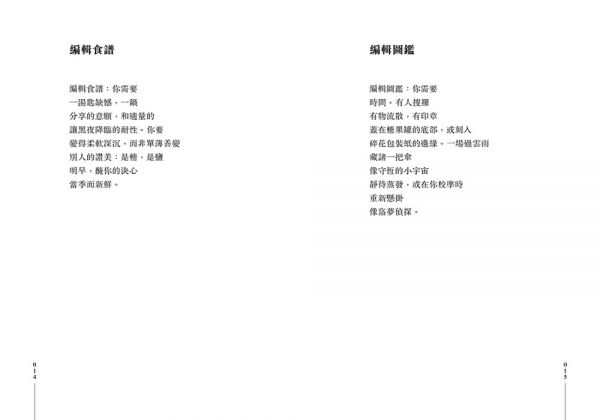 「詩通常在夜裡寫成,然後入夢反芻。與此同時,未洗的杯盤無眠發亮,就像歷經亂離與磨難的室樂團,是時候讓碗裡的黑暗把自己再浣洗一遍,把深刻還給今天。」——詩人自述