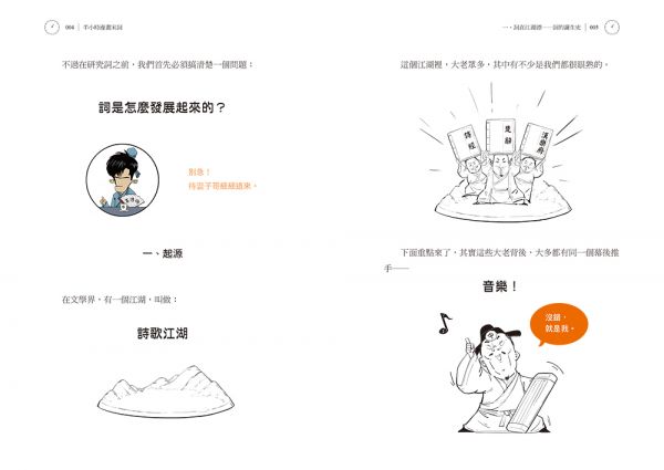 這是一本輕鬆有趣、扎實有力的歷史漫畫書,內容真實且嚴謹,將原本枯燥生澀的知識穿上「搞笑幽默」的外衣。沒有拗口難懂的詞彙,沒有刻意賣弄的文采。從宋詞的創作故事著手,掌握宋詞的來龍去脈。