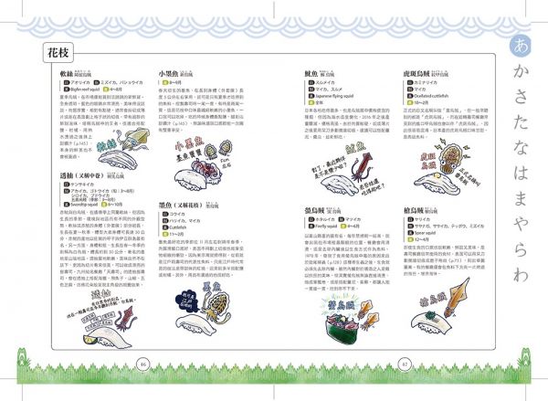 無論在迴轉壽司店或是日本料理店,看到菜單上想多了解的壽司種類,都可拿出本書翻閱,一定能找到想嘗試的品項,還能跟壽司師傅交流。