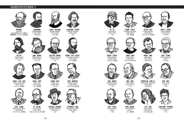 不輸主文的精采資訊,從全書一開始的「建築思想地圖」與「建築思想相關年表」,理解思潮發展脈絡。各章之間還穿插「建築旅行」主題專欄。至於本書最後的附錄「建築書的影響力」以及「拓展建築思想的世界/日本建築家」,特別介紹彙整了擁有強大影響力的建築著作與建築家群像。