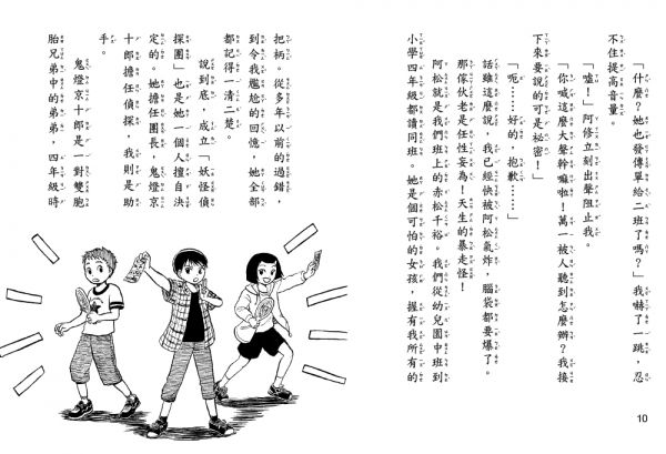 書裡有好多奇妙的妖怪,情節也很精彩,一下子就讀完了……這本書真的很好看,會一直看下去很想知道接下來的劇情走向,推薦給喜歡妖怪故事的小朋友們!——小學低年級,吳〇霖