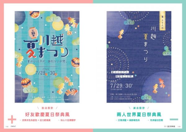 A:重點在於「加在什麼地方」上!建議先針對大、小標題與主視覺照片等,從主要元素的裝飾手法進行加法思考。讓版面提升熱鬧感與親和度的同時,也強調主要元素。也可以試著增添不同顏色及圖案。