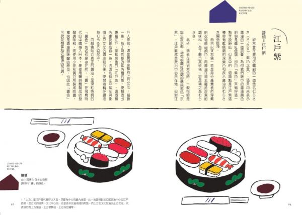 經常會在壽司店聽到的一個色名むらさき(murasaki,紫色之意),這是用來表示醬油的一個詞彙。為何我們眼中的醬油顏色明明是偏紅色調,卻用「紫色」來稱呼這一點眾說紛紜。但其中的一個論點是江戶紫這種帶有藍色調的深紫色和表示醬油的むらさき關係匪淺。