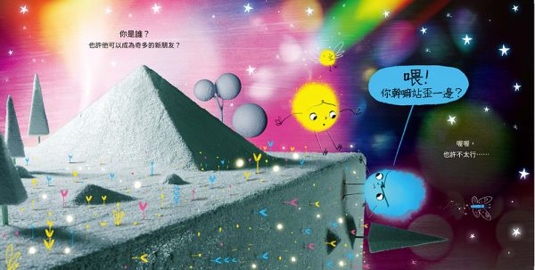 2-符合色彩心理學的畫面隱喻:運用黃、藍強烈對比色與灰色調視覺化立場衝突,讓孩子直觀感受對立與情緒起伏 。