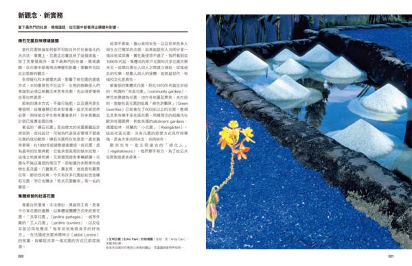 近三十年來,愈來愈多人著迷這門藝術。或許,如園藝專家米歇.巴瑞東(Michel Baridon)所說的,花園見證了「古往今來我們眼中的世界」。當代花園採用什麼語彙、什麼獨特語法,造就出豐富的世界,以及它們與古典花園間微妙的聯繫與拮抗,該如何進入又不致走偏?演化的脈絡如何?演替如何進展?典範怎麼轉移?所開發的新創意、新技巧,與新開闢的彊域又在哪裡?